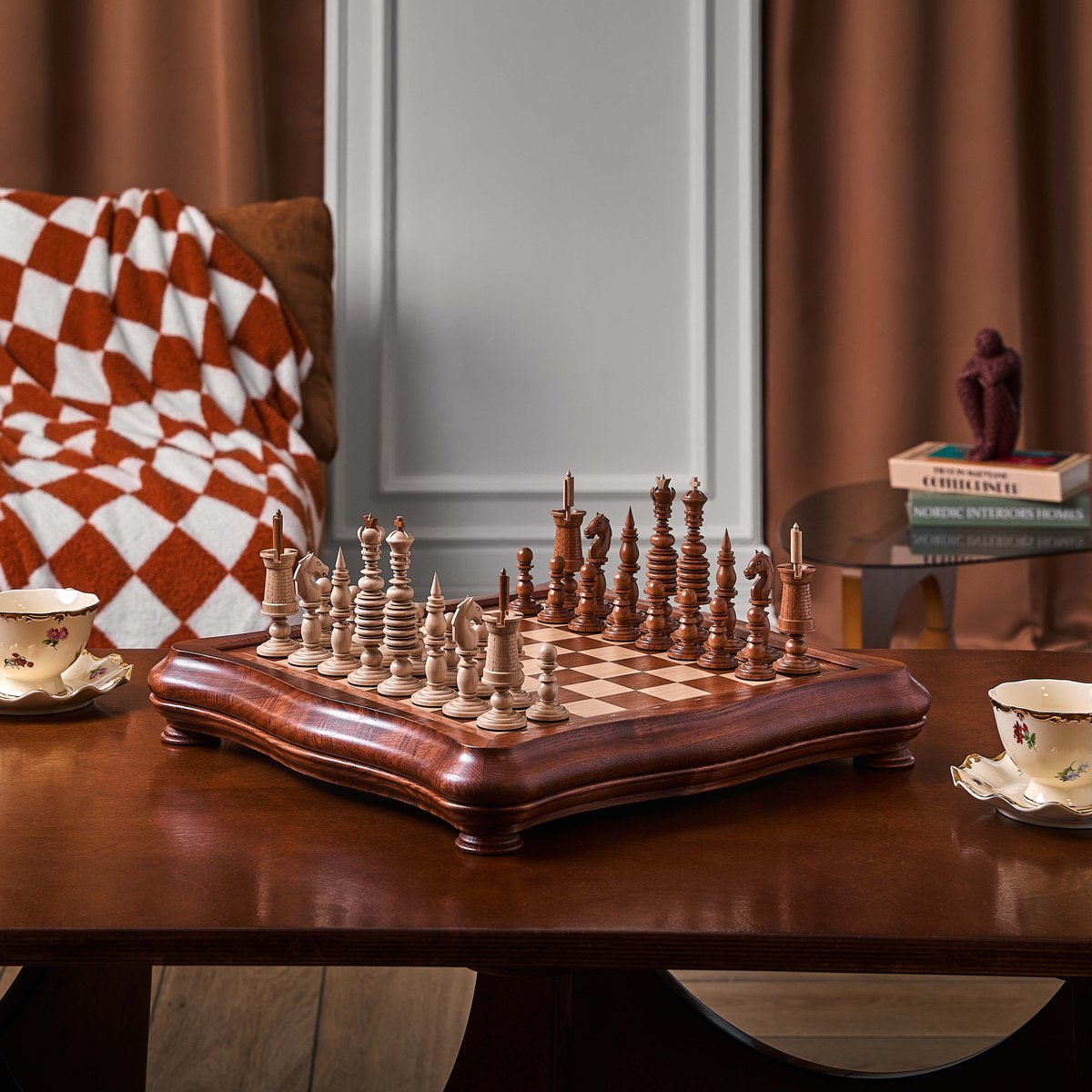 Комплект шахмат изготавливается из натуральных пород дерева вручную поштучно: в оттенках деталей могут быть отличия от набора на фотографии.